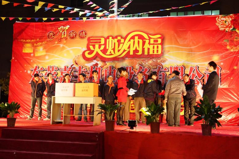 2013年元月19日晚上,東莞嘉豐公司全體員工在公司籃球場(chǎng)舉行了一場(chǎng)盛大的晚會(huì),公司吳常董也欣然參加了晚會(huì)。